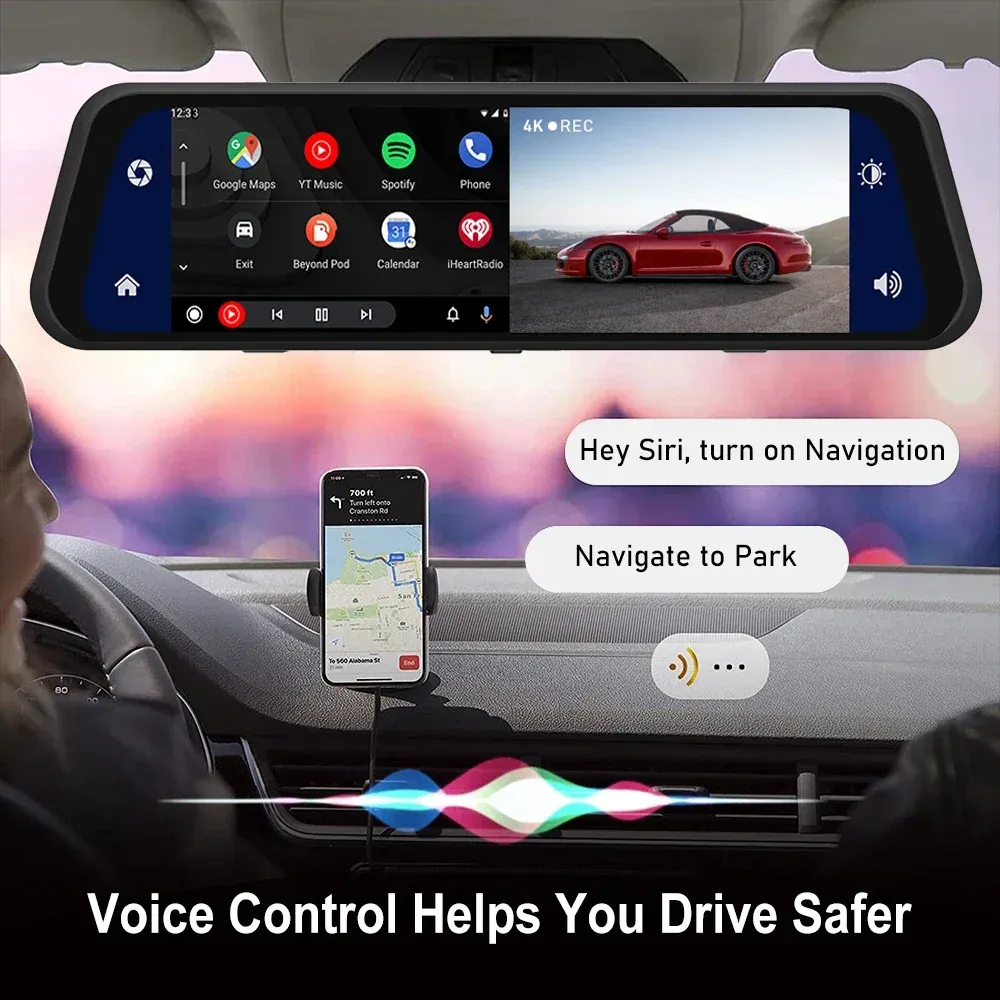 Dash Cam 4K 2160P Car Dvr Carplay Android Auto Stream RearView Mirror GPS 5G WIFI FM Radio AUX Dashcam Car Camera Drive Recorder