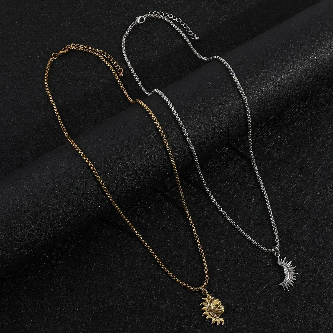Golden Sun Moon Pendant Necklace Fashion Geometric necklace Jewelry punk jewelry