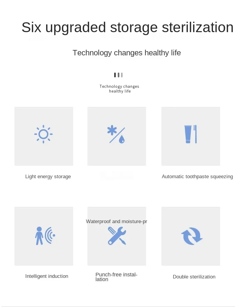 Hot Sale Home Solar Energy No Need to Charge UV Toothbrush Holder Dispenser Tooth Paste Dispenser with Toothbrush Holde