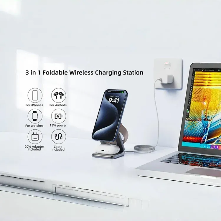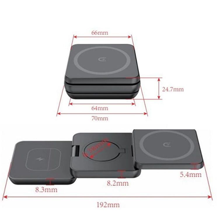 Portable 3 in 1 Magnetic Wireless Charger Stand Foldable Multi-Angle Adjustable Fast Charging Station