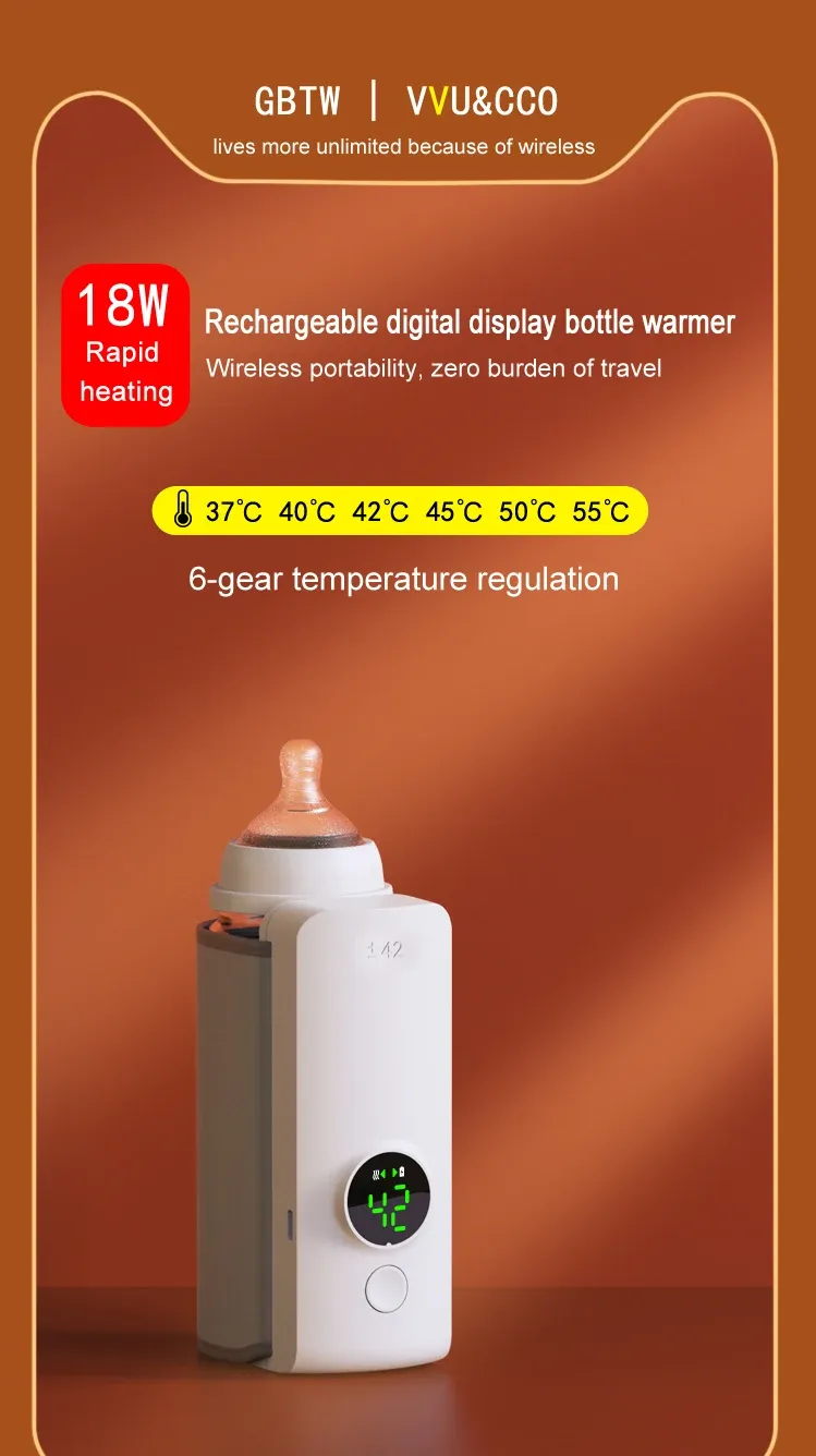 Portable Cordless Baby Essentials Milk Bottle Warmer Rechargeable USB Heated for Outdoor Travel and Baby Feeding