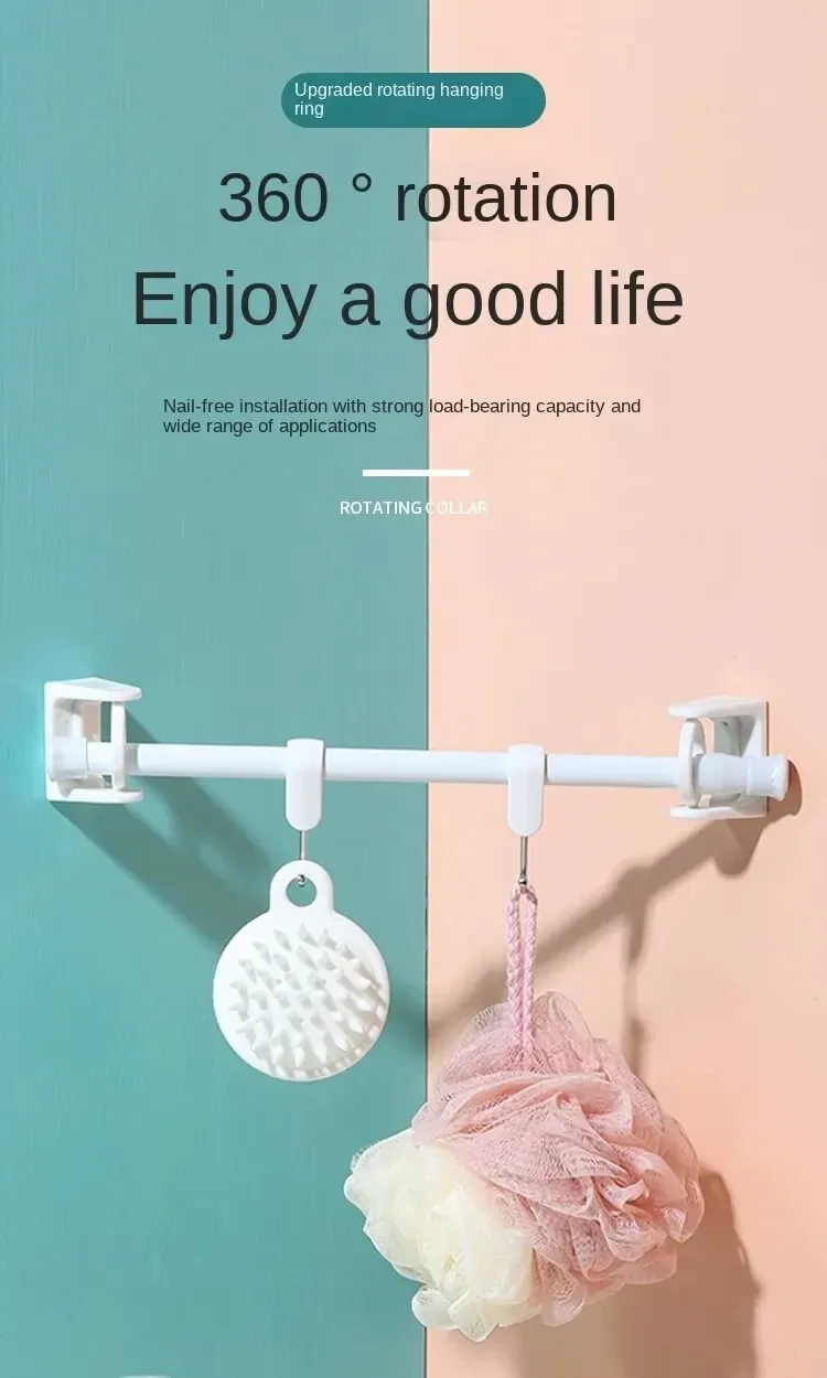 360 Degree Rotatable Retractable Pole Fixator for Non-drilling Strong Adhesive Hooks Towel Rod Shower Curtain Rod Bracket