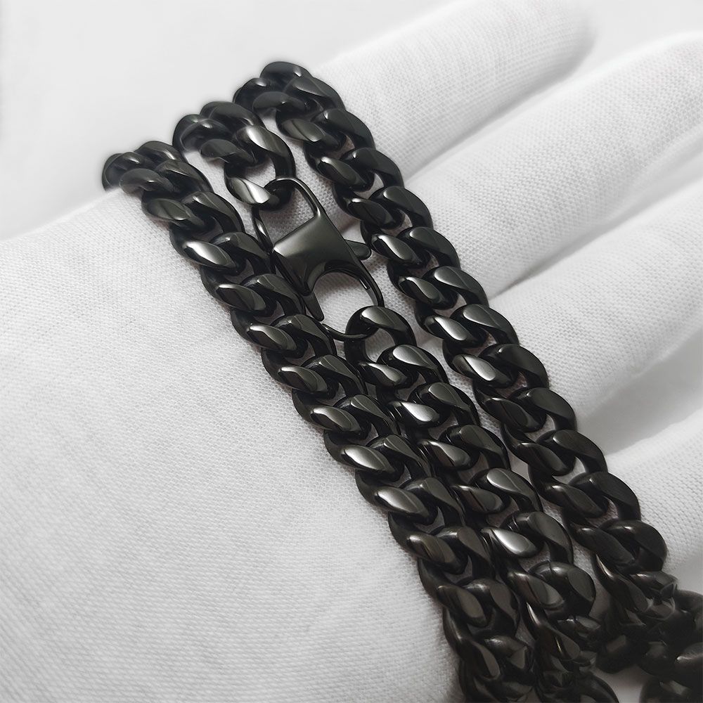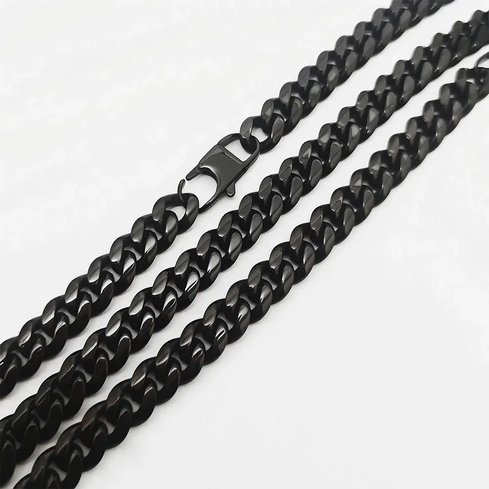 Black Plated Stainless Steel Miami Cuban Link Necklace Cuban Chains Men