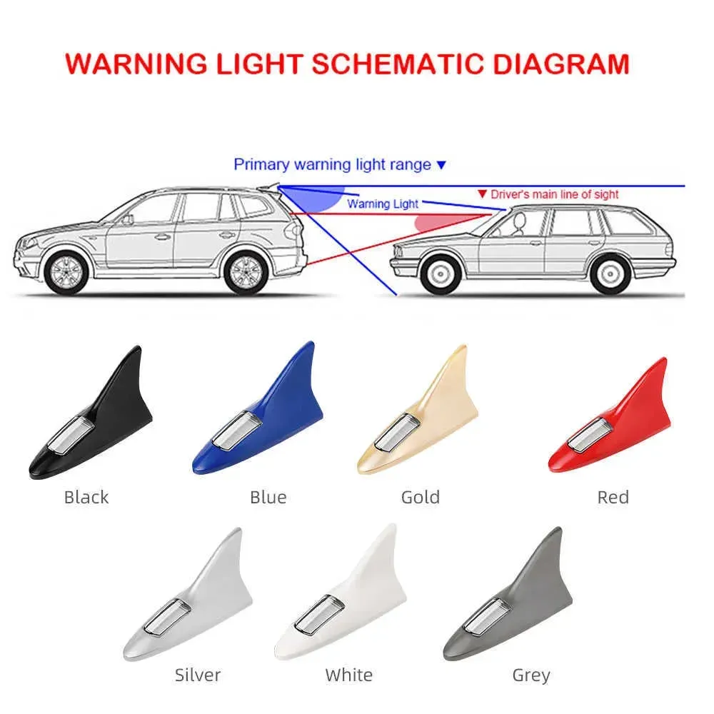 Car Anti Tailgating Lights Solar Shark Fin Antenna Roof Lights Decorative Modification Lights LED Flashing