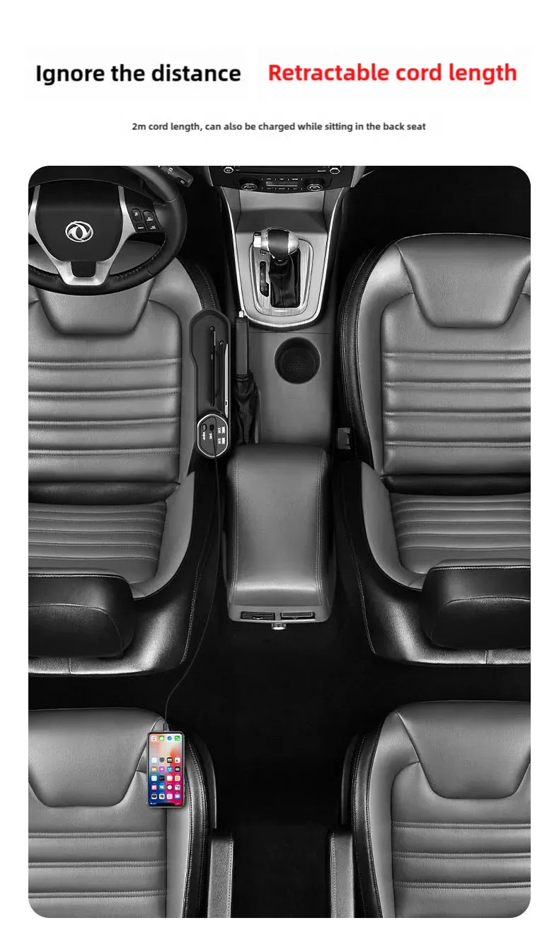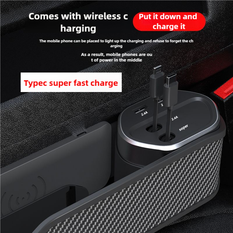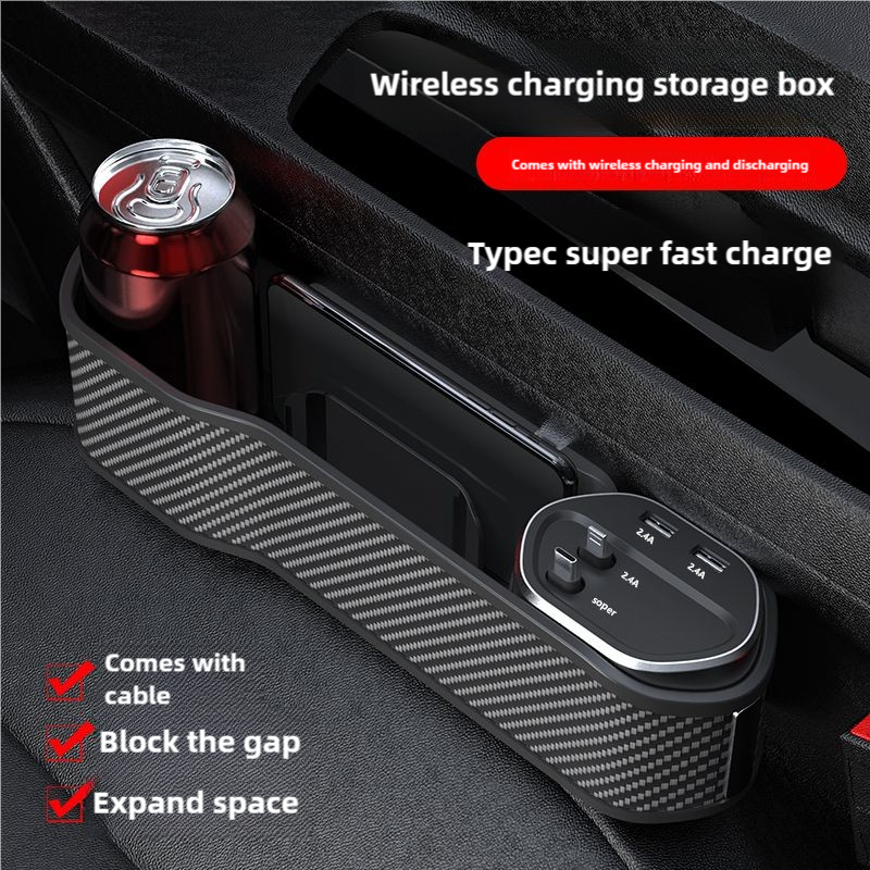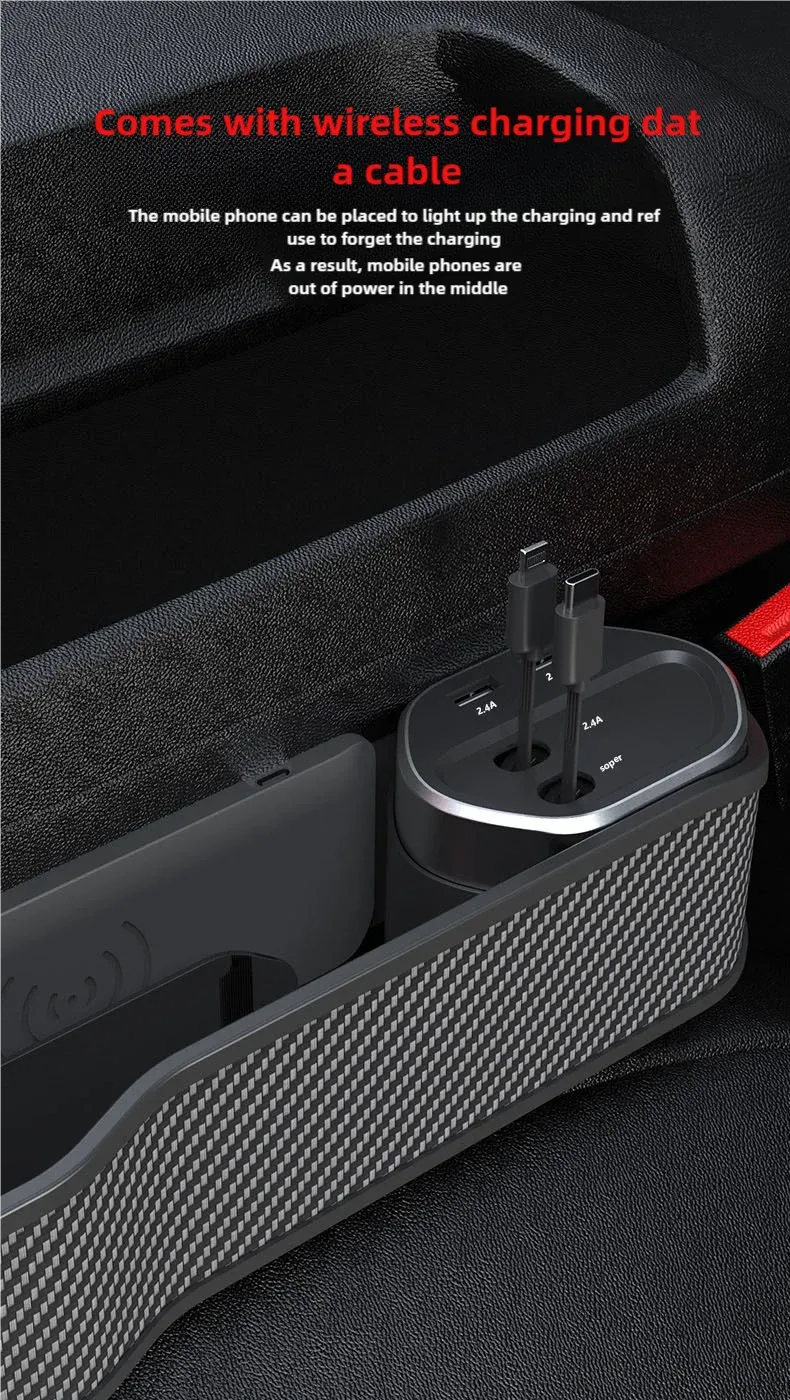 Car Seat Organizer with Wireless Fast Charging USB Port 3in1 Retractable Cable Car Storage Box for Smartphones and Accessories
