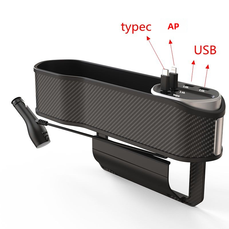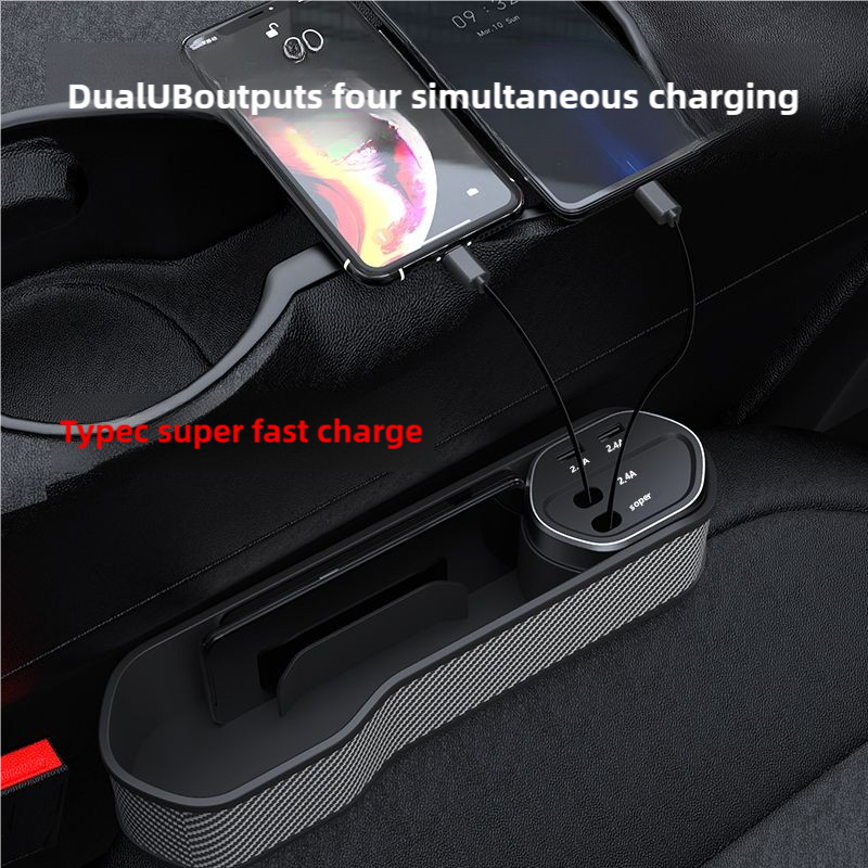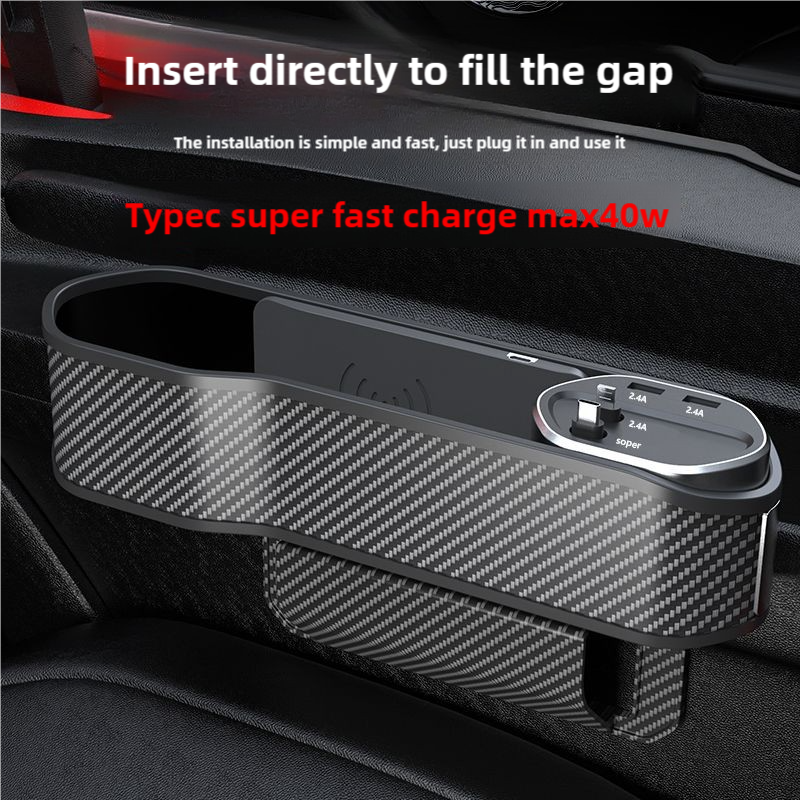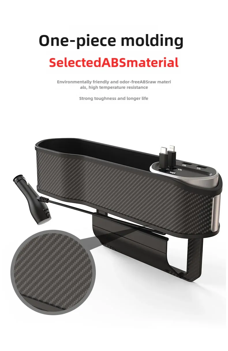 Car Seat Organizer with Wireless Fast Charging USB Port 3in1 Retractable Cable Car Storage Box for Smartphones and Accessories