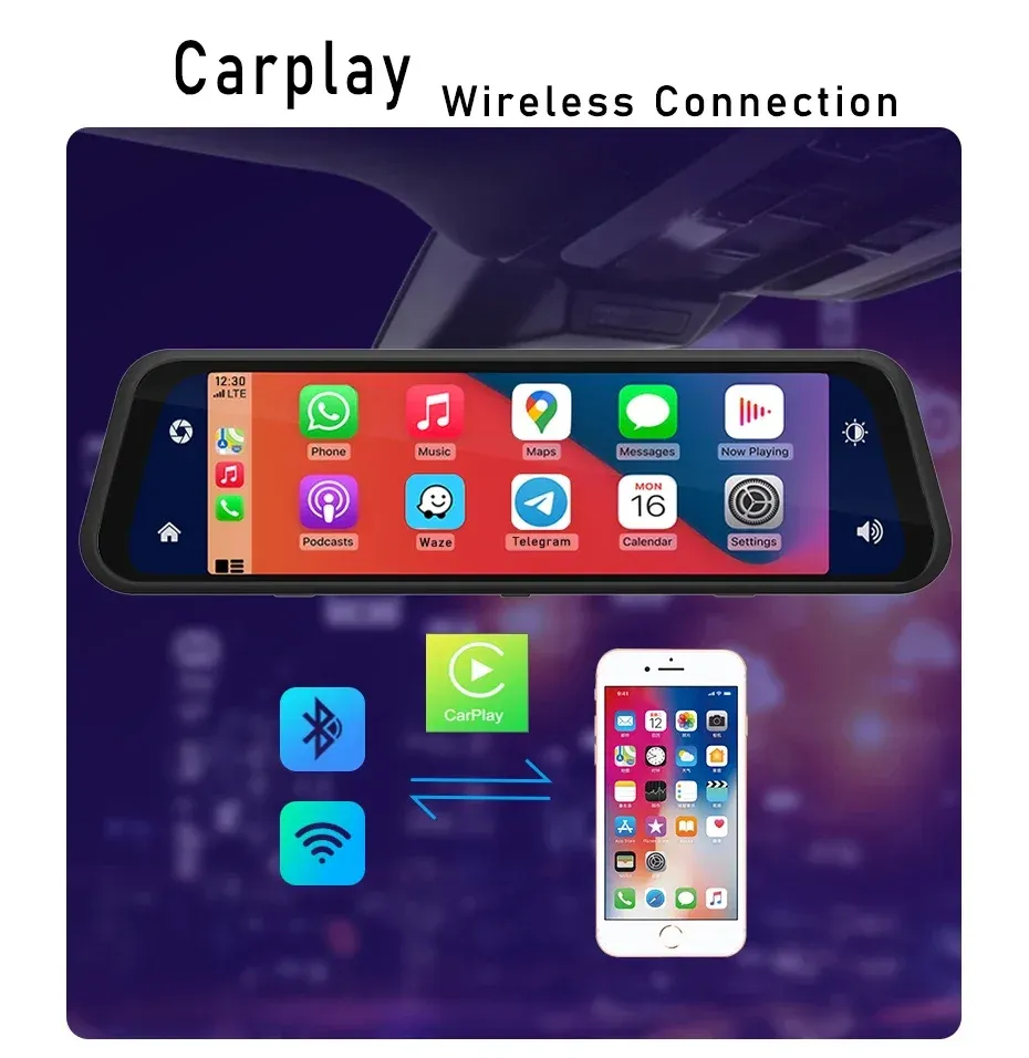 Dash Cam 4K 2160P Car Dvr Carplay Android Auto Stream RearView Mirror GPS 5G WIFI FM Radio AUX Dashcam Car Camera Drive Recorder