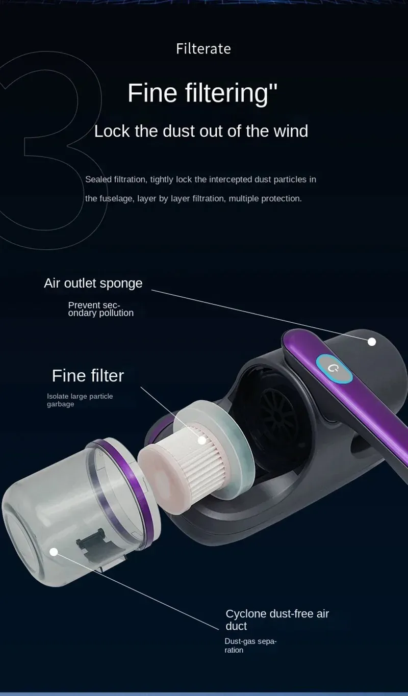 Electric Handheld Vacuum Cleaner Cordless Household Electric Mite Remover Ultraviolet Ray Remove Bed Mites Vacuum Cleaner