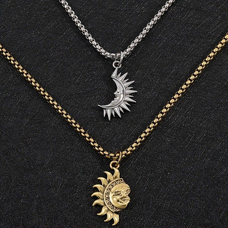 Golden Sun Moon Pendant Necklace Fashion Geometric necklace Jewelry punk jewelry