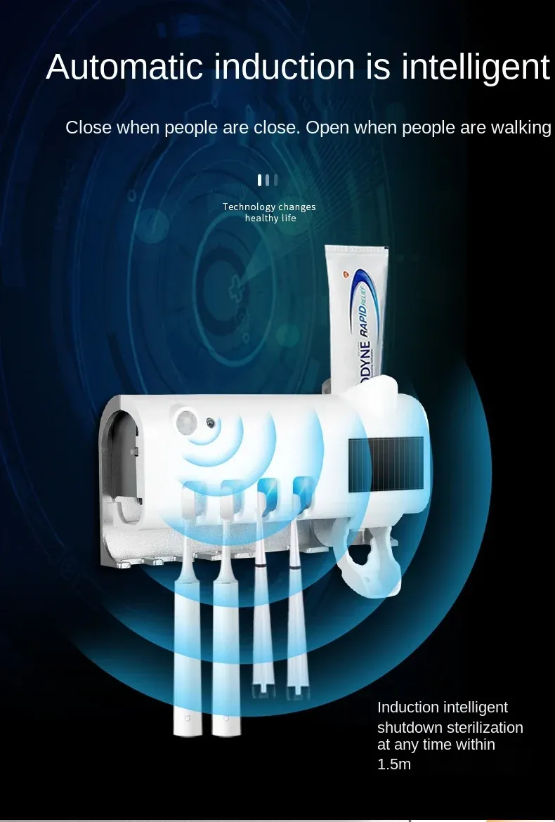 Hot Sale Home Solar Energy No Need to Charge UV Toothbrush Holder Dispenser Tooth Paste Dispenser with Toothbrush Holde