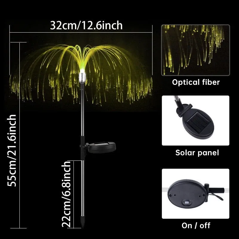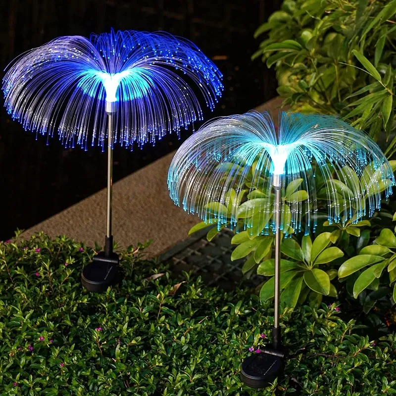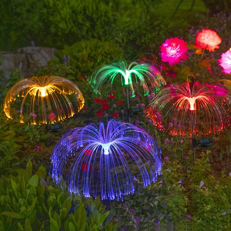 LED Solar Power Outdoor Fiber Optic Jellyfish Colorful Lamp Color Changing Garden Ground Lawn Pathway Street Light