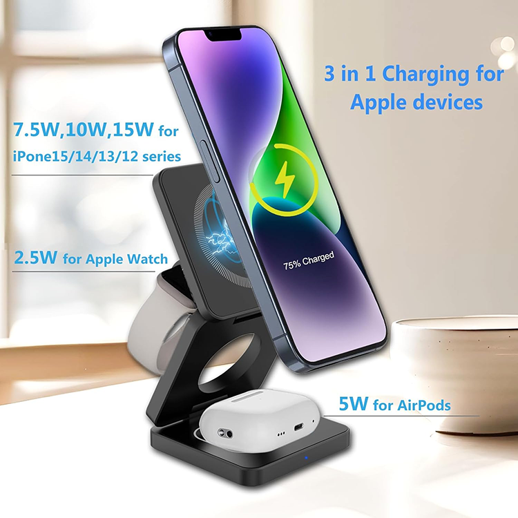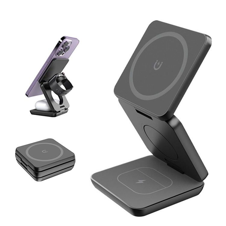 Portable 3 in 1 Magnetic Wireless Charger Stand Foldable Multi-Angle Adjustable Fast Charging Station