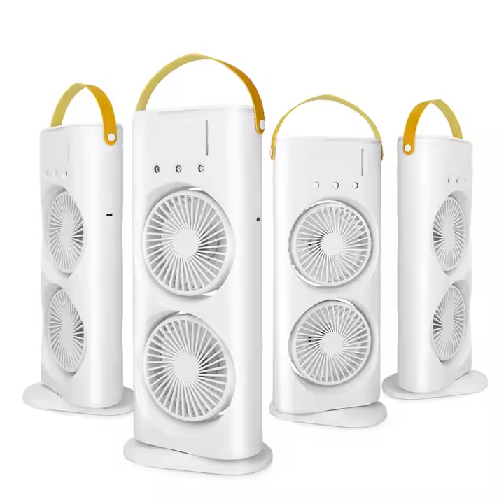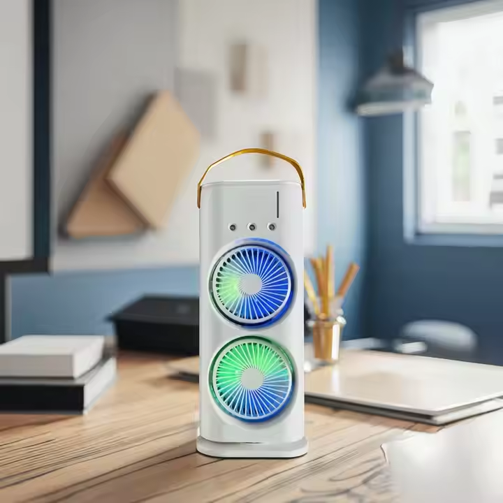 Portable Dual-Head Spray Fan with USB LED Light & Remote Control Battery Powered Space Cooling Water Cold Air Humidifier